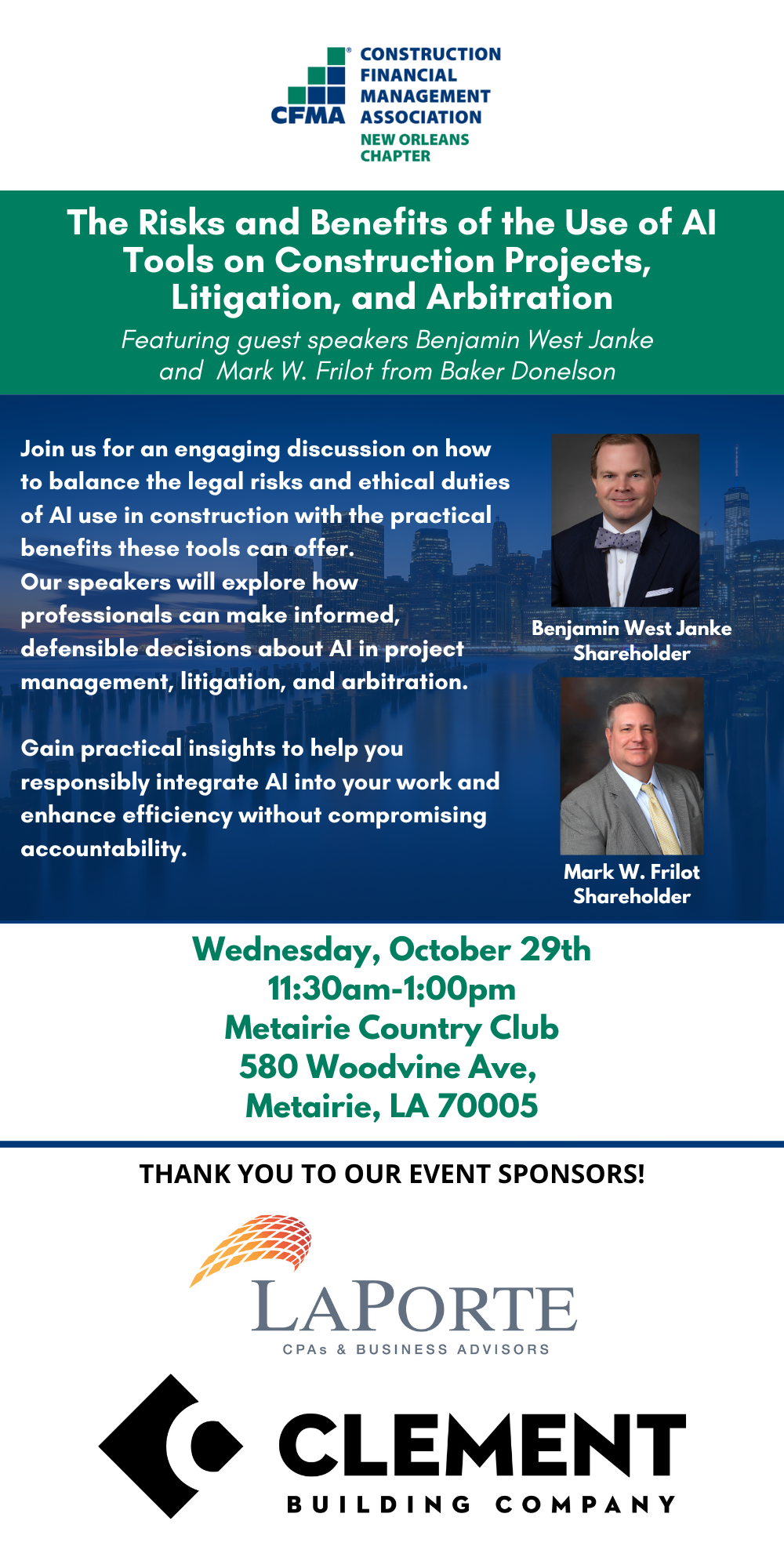 Oct 29, 2025 - 11:30 AM (CT) - Metairie Country Club, 580 Woodvine Ave, Metairie, LA 70005